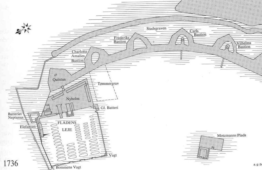 træbro. I 1742 påbegyndtes Arsenalbygningerne på