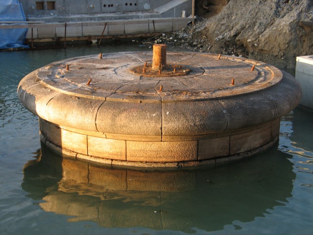Mellemkrigsårene. I mellemkrigsårene rationaliseredes skibsbyggeriet på Holmen. Skibsbyggeri på Nyholm opgaves og flyttedes til Dokøen, i bekvem nærhed af de store værksteder på Frederiksholm. Et gammelt arbejdshus nord for dokken på Nyholm blev erstattet af de to højbanekraner, der stadig "pryder" den nordlige Dokø. Syd for dokken opførtes et nyt skibsbyggeri i 1926. Foruden opførelse af flere andre bygninger i forbindelse med skibsbyggeriet, erstattedes den gamle svingbro fra 1862-63 til Frederiksholm af en dæmning. Dæmningen blev lagt over den gamle granitpille til svingbroen. Granitpillen kom til syne igen i forbindelse med operabyggeriet (se billedet). |