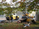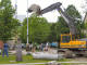 gamle lygtestandere fjernes med gravemaskine og