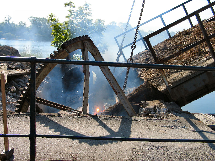 nu helt fjernet og en stor del af brofæstet
